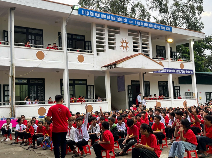 Buổi truyền thông được tổ chức sôi nổi, thu hút đông đảo học sinh tham gia. Các em chăm chú lắng nghe, hào hứng giơ tay trả lời các câu hỏi tìm hiểu và nhận về những phần quà nhỏ xinh, đầy ý nghĩa.