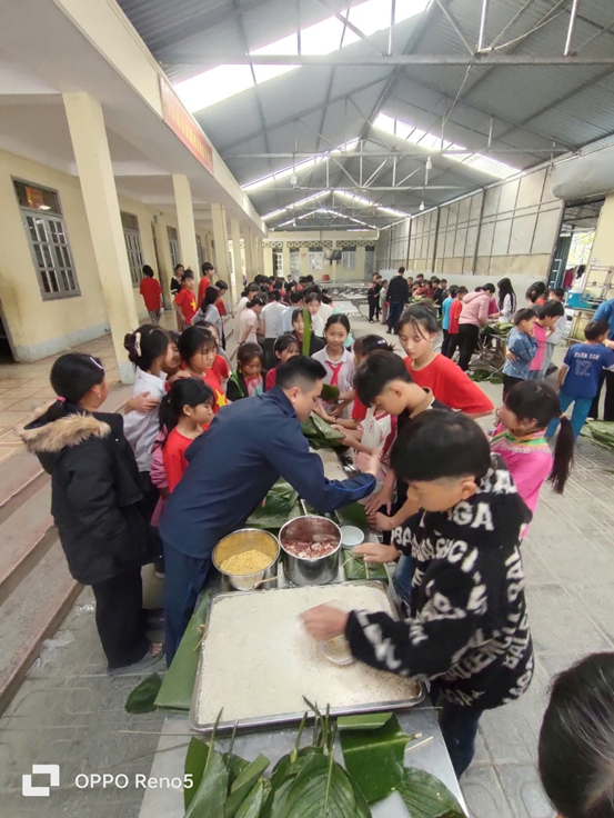 Hoạt động được tổ chức trong không khí rộn ràng, ấm áp những ngày giáp Tết. Ngay từ sớm, khuôn viên nhà trường đã trở nên nhộn nhịp với sự tham gia của thầy cô giáo, học sinh và một số phụ huynh. Nguyên liệu gói bánh được chuẩn bị đầy đủ như lá dong xanh, gạo nếp trắng, đậu xanh vàng, thịt lợn tươi ngon, lạt buộc và khuôn gói bánh. Mỗi lớp được phân công thành các nhóm nhỏ để cùng nhau tham gia trải nghiệm.