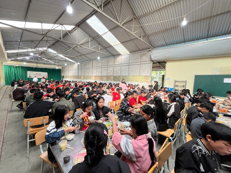 Khép lại chuỗi hoạt động là bữa ăn cơm Tết Dân tộc 63 mâm đầy ấm cúng và ý nghĩa. Thầy cô và học sinh quây quần bên mâm cơm Tết với những món ăn truyền thống do chính tay các em tham gia chuẩn bị. Bữa cơm không chỉ là dịp để thưởng thức hương vị Tết mà còn là khoảnh khắc gắn kết yêu thương, giúp các em học sinh trong nhà trường cảm nhận rõ hơn sự quan tâm, chăm lo của nhà trường, của thầy cô – những người luôn đồng hành cùng các em trong học tập và cuộc sống.