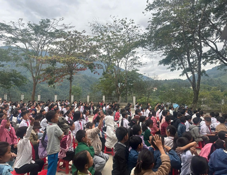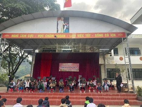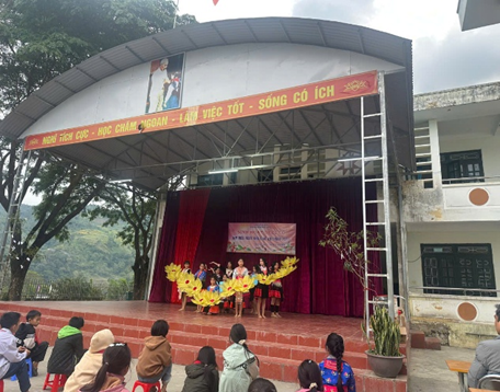 Hình ảnh thầy Hiệu trưởng cùng các em học sinh trên sân khấu như lan tỏa thông điệp về sự quan tâm, yêu thương và kỳ vọng mà thầy cô dành cho các em – những chủ nhân tương lai của quê hương Na Sang.