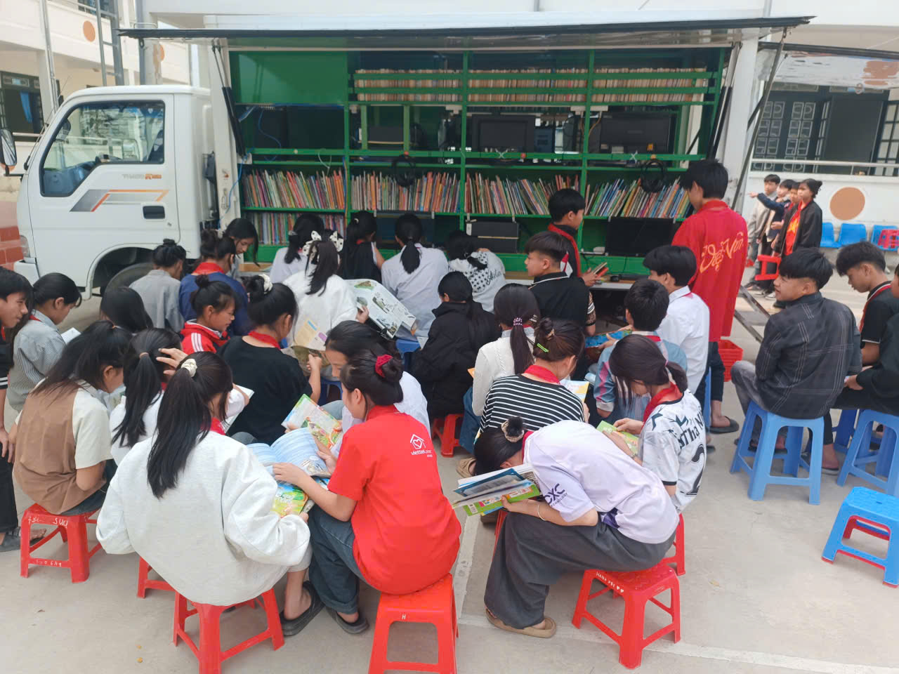 Ngay từ sáng sớm, không khí trong trường trở nên rộn ràng, sôi nổi khi đón chuyến xe thư viện lưu động của Thư viện tỉnh Điện Biên. Hoạt động đã thu hút sự tham gia đông đảo của cán bộ, giáo viên và học sinh toàn trường, tạo nên một không gian học tập trực quan, sinh động và đầy ý nghĩa.