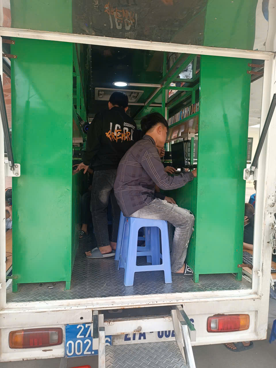 Học sinh tham gia tra cứu tài liệu trên mạng máy tính của thư viện lưu động