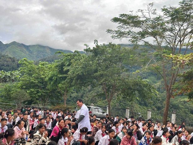 Tham dự buổi truyền thông có cán bộ điểm Trạm Y tế Sa Lông cùng toàn thể Ban Giám hiệu, giáo viên, nhân viên cùng 382 học sinh trong nhà trường.